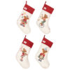 Orsetto con cappello e mantello: Infine, la quarta calza vede l’orsetto vestito con un cappello e un mantello, quasi come un piccolo mago o esploratore, aggiungendo un pizzico di mistero e fascino.