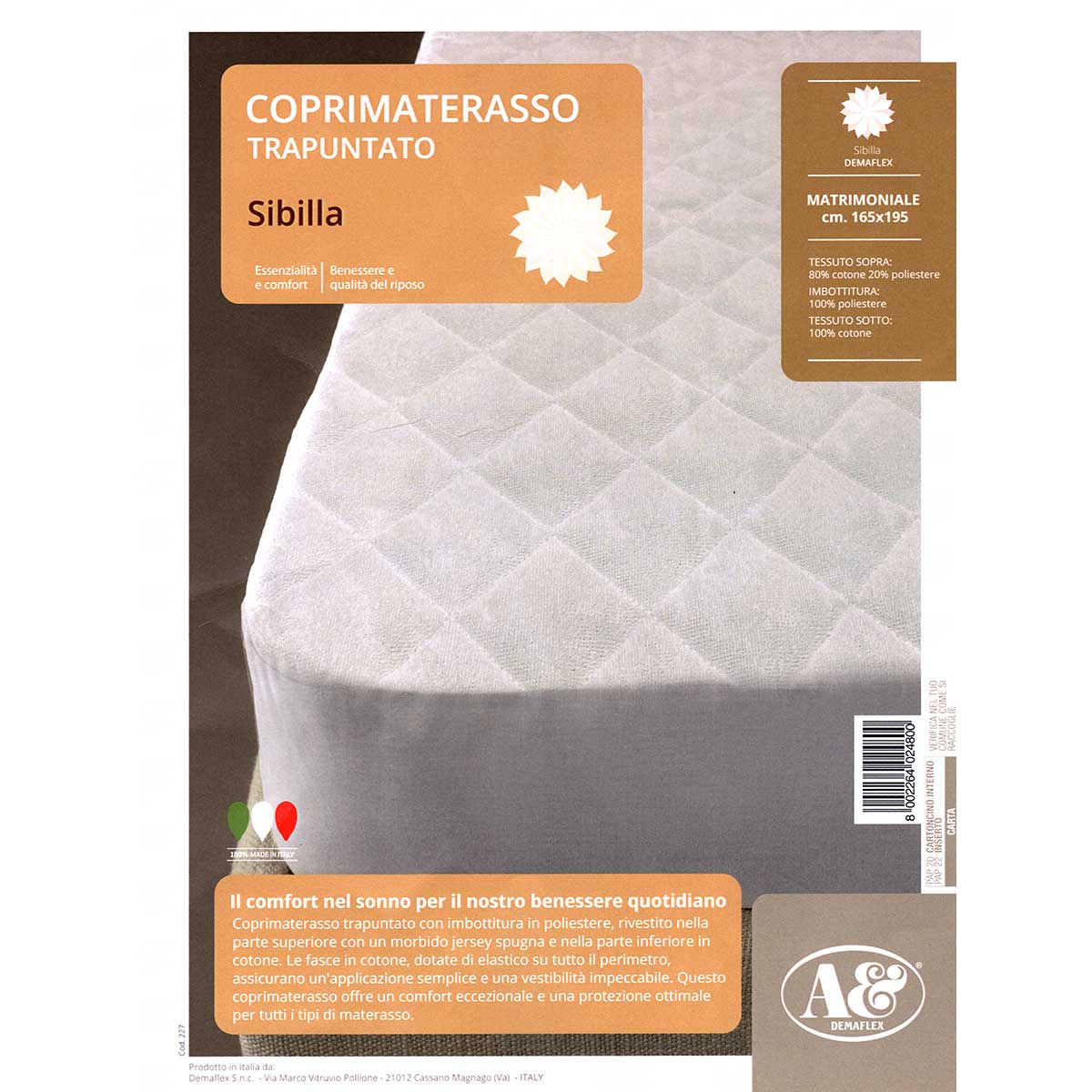 Il Coprimaterasso trapuntato matrimoniale è disponibile nella misura 165×195 cm, ideale per i letti matrimoniali standard. Grazie alla sua struttura trapuntata e agli elastici perimetrali, rimane perfettamente in posizione anche con movimenti frequenti durante il sonno.