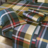 Il copripiumino 7400 Silva BOSSI tinto filo ha una fantasia scozzese a quadri sui toni del verde.