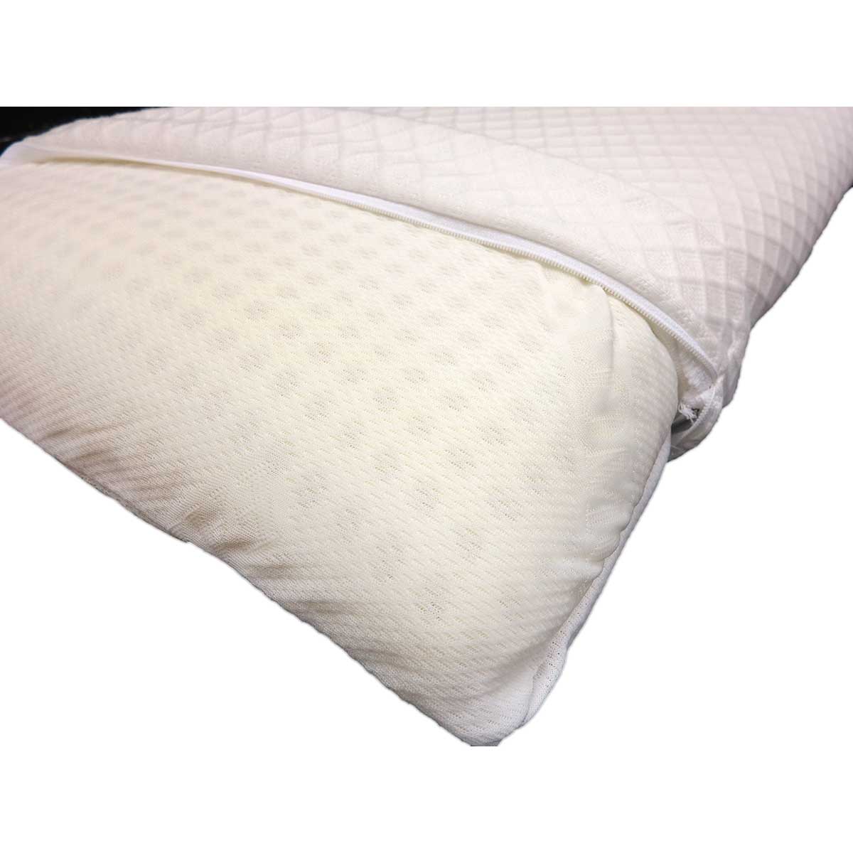 La fodera del cuscino in tessuto Tencel®, è rimovibile tramite cerniera perimetrale ed è lavabile in lavatrice fino a 60°C per eliminare acari della polvere e batteri, garantendo un guanciale sempre igienicamente impeccabile.