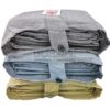 Grazie alla tintura in filo, i colori rimangono brillanti anche dopo numerosi lavaggi, garantendo una freschezza cromatica che dura negli anni: il verde, il grigio e l’azzurro avio, tutti proposti in tinta unita, restano vivaci e pieni di fascino.