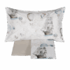 Il lenzuolo copriletto si distingue per la stampa doppia: la fantasia floreale si estende sia sulla balza che su tutta la superficie del lenzuolo superiore, garantendo un effetto finito che avvolge il letto senza necessità di un ulteriore copriletto.