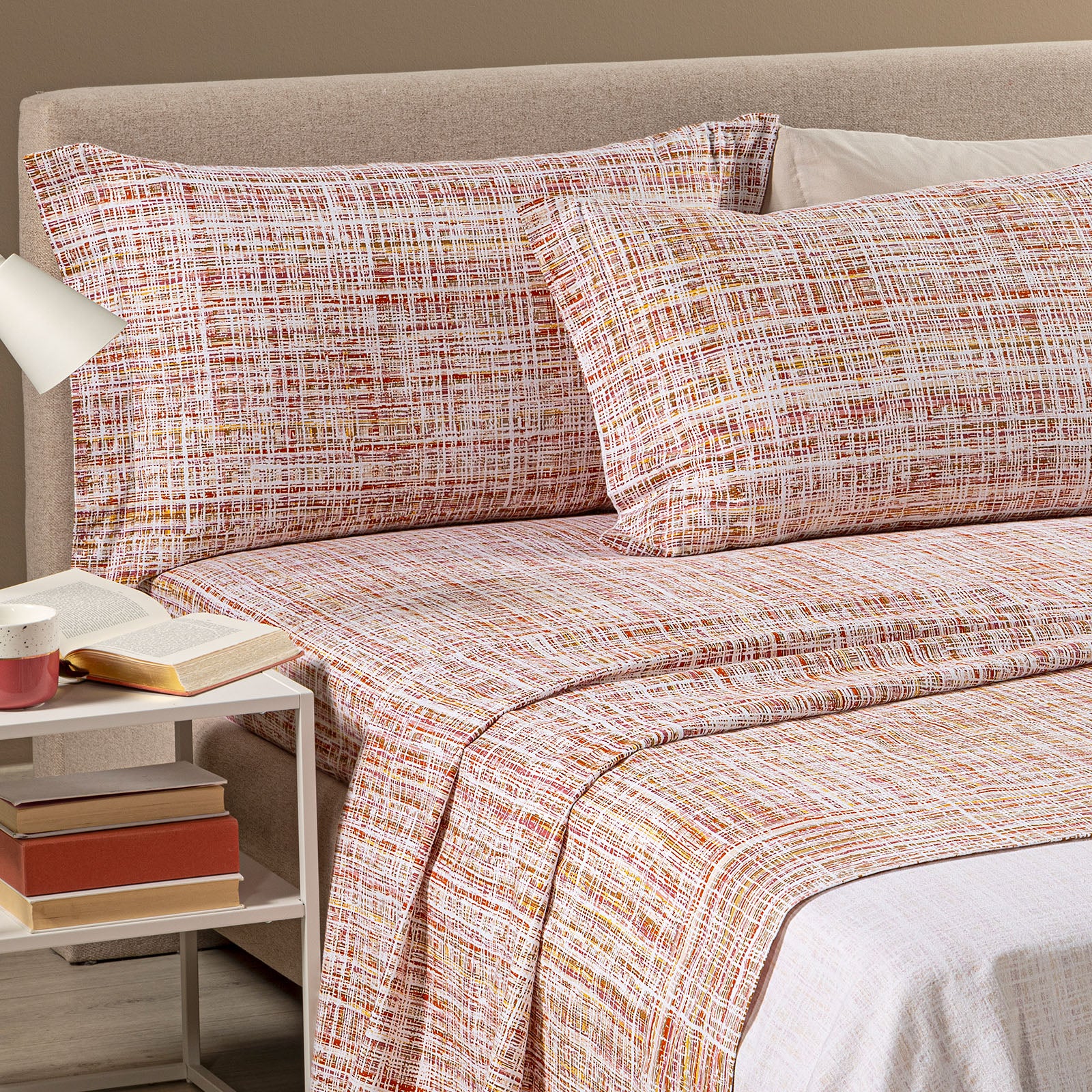 La flanella Caleffi è sinonimo di comfort invernale. Grazie alla sua particolare lavorazione, il tessuto mantiene il calore senza rinunciare alla traspirabilità, regalando un sonno sereno e naturale. Il lenzuolo flanella matrimoniale Caleffi si distingue per la sua stampa raffinata: un delicato motivo geometrico corallo che dona un’eleganza romantica e luminosa alla camera da letto.