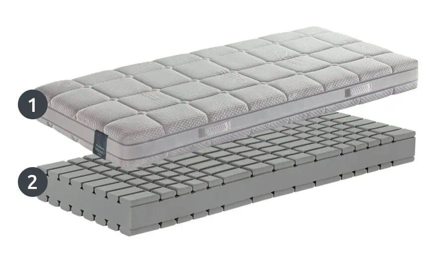 Le scanalature presenti sul massello in Soia e il particolare taglio contour, donano traspirabilità al materasso e assicurano un’accoglienza progressiva grazie alle sue 7 zone a portanza differenziata.