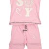 Il pigiama donna primavera-estate Sweet Years è progettato per unire stile e funzionalità. Il tessuto in cotone assicura freschezza e morbidezza a contatto con la pelle, mentre la vestibilità comoda e la lunghezza dei pantaloni pinocchietto garantiscono totale libertà di movimento durante il sonno.
