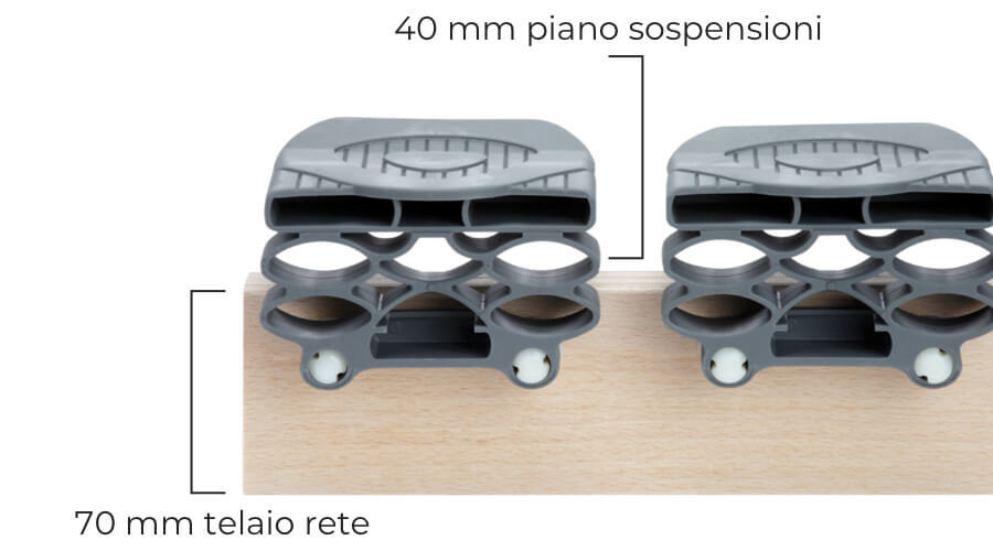 - Altezza: 11 cm (7 cm spessore telaio + 4 cm spessore sospensioni e doghe)