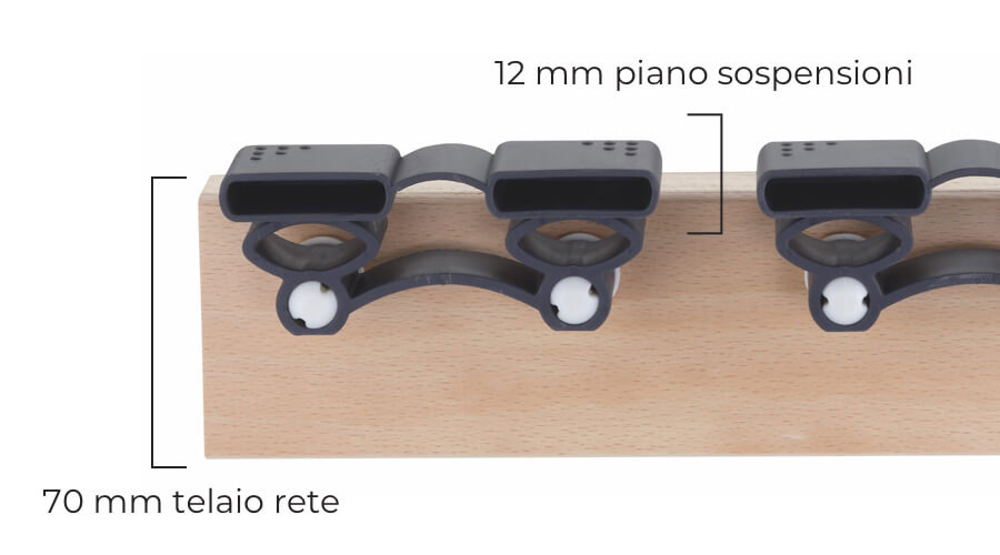 - Altezza: 9 cm (7 cm spessore telaio + 1,2 cm spessore sospensioni)