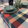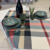 Tovaglia BOSSI TINTO IN FILO SENZA TOVAGLIOLI fantasia beige, verde e rosso.